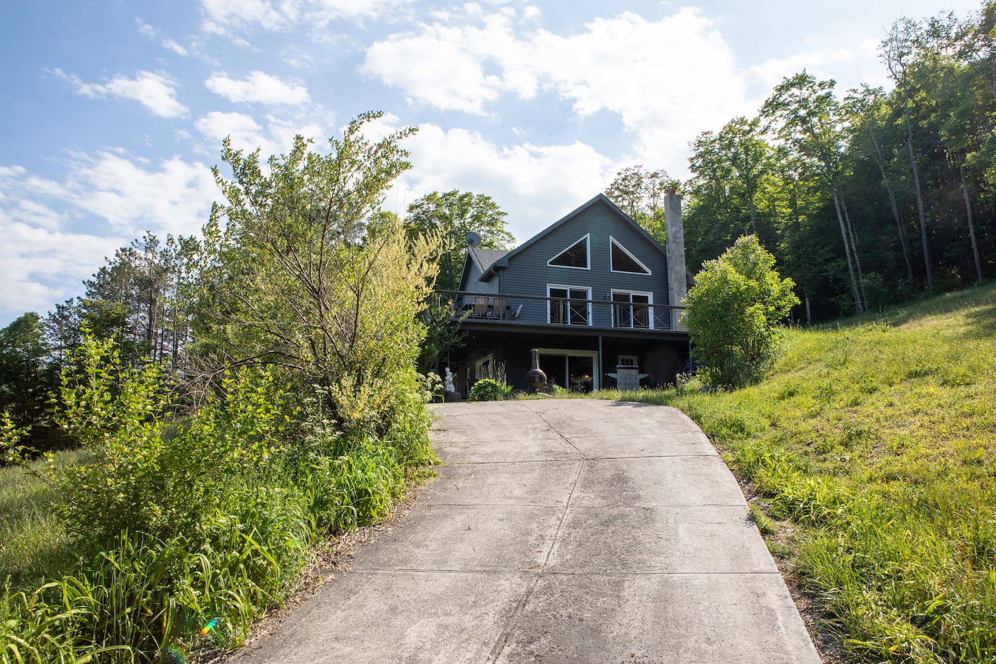 Can only get around by car. Steep driveway leads up to parking area right in front of house. Can park 3-4 cars. *WINTER: Please plan ahead and ensure your vehicle is equipped with 4WD for winter conditions. It's best to arrive during daylight hours. Our driveway is steep and will be challenging to get up and down driveway without 4WD.